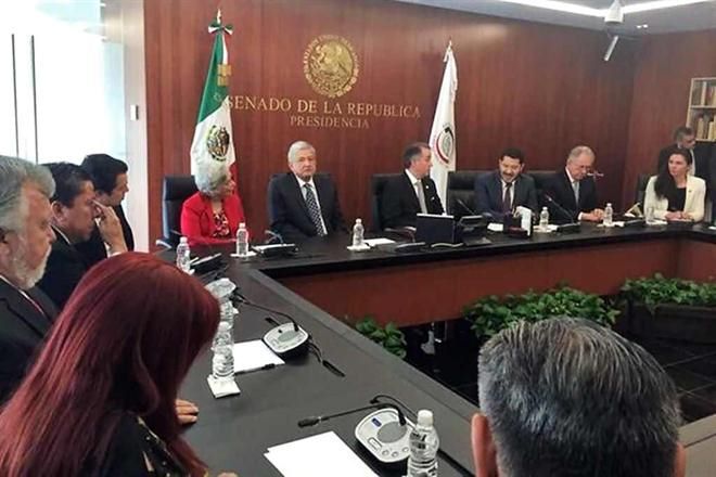López Obrador tiene una reunión privada en la Mesa Directiva del Senado, encabezada por el priista Raúl Cervantes.