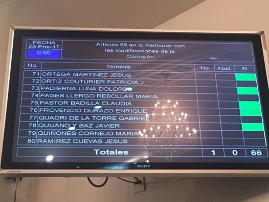 con 67 a favor, 1 en contra y 0 abstenciones, sobre el Instituto de Defensoría